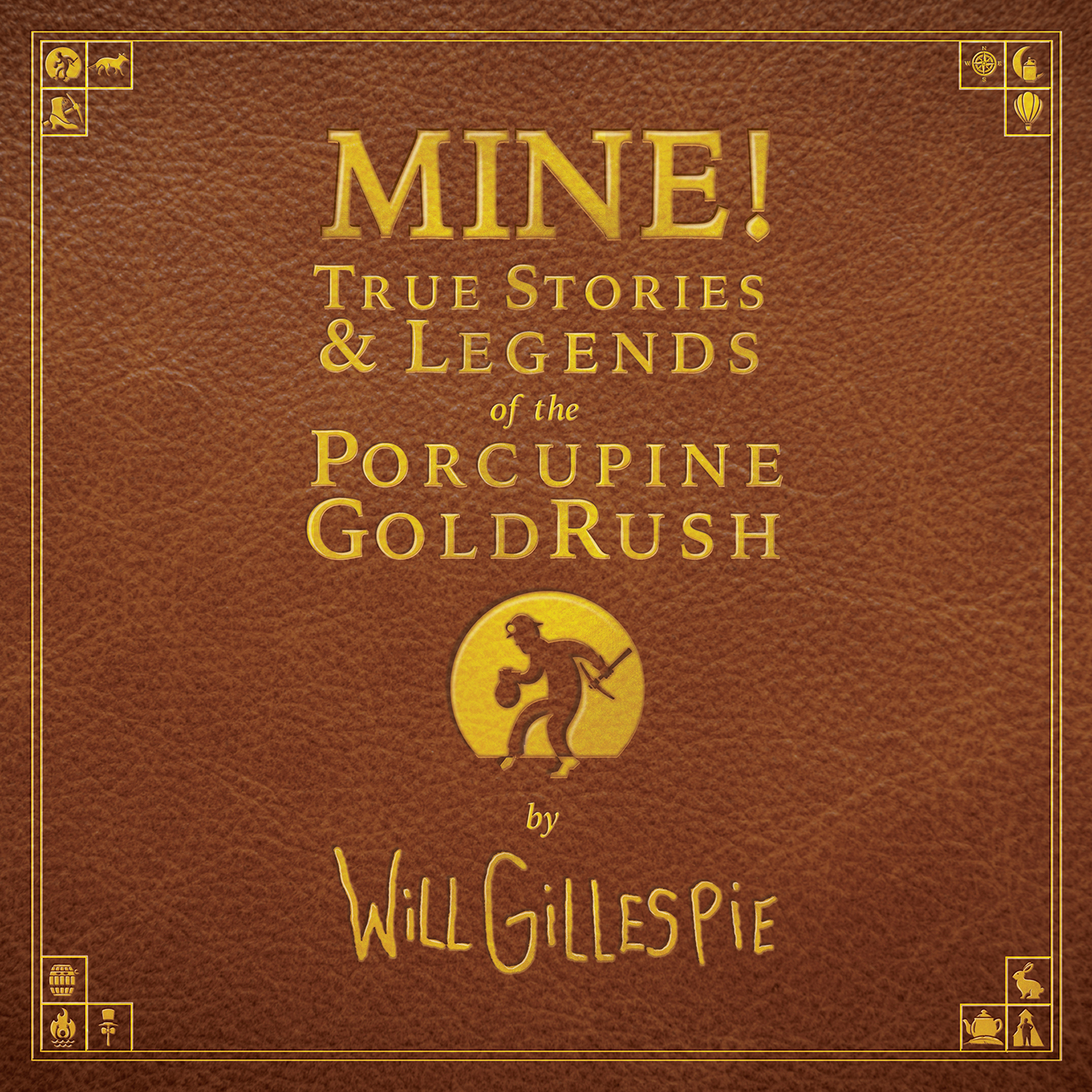 The show logo and album cover for “MINE! True Stories and Legends of the Porcupine Gold Rush” with 12 individual song/chapter logos representing each of the stories.